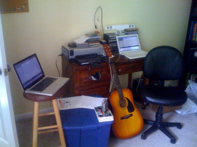 Finally, I spent a LOT of time this afternoon and evening listening back to the seven songs I’ve recorded as of today. I’ve become quite anxious, as some of the tracks I thought were good simply don’t sound so good days later. I took the time to re-record the acoustic guitar for “Work Time, Get in Line” as well as the drum track (it’s actually me!) for “The Best Reason I Wake Up.”