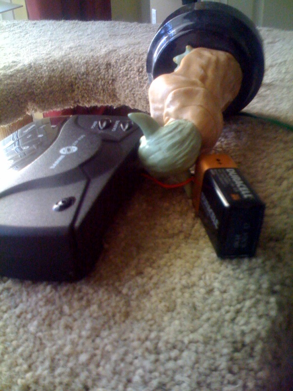 Somewhere in this process, I’ve lost a couple of days in my online journal. Thus, here I am to fill in the gaps. I don’t have full details or exact dates, but Mike came over one night (in April? during my school break?) for the first bass track overdub of the album. Although he was here for a couple hours, we only worked on one song: “No Lights, No Sound.” This may not sound like what you’d call progress, but we were thrilled. We experimented with bass sounds (i.e. through pedal, through amp, directly into laptop), Mike developed a tastefully simple but memorable bass line, and I managed to finally play it right.